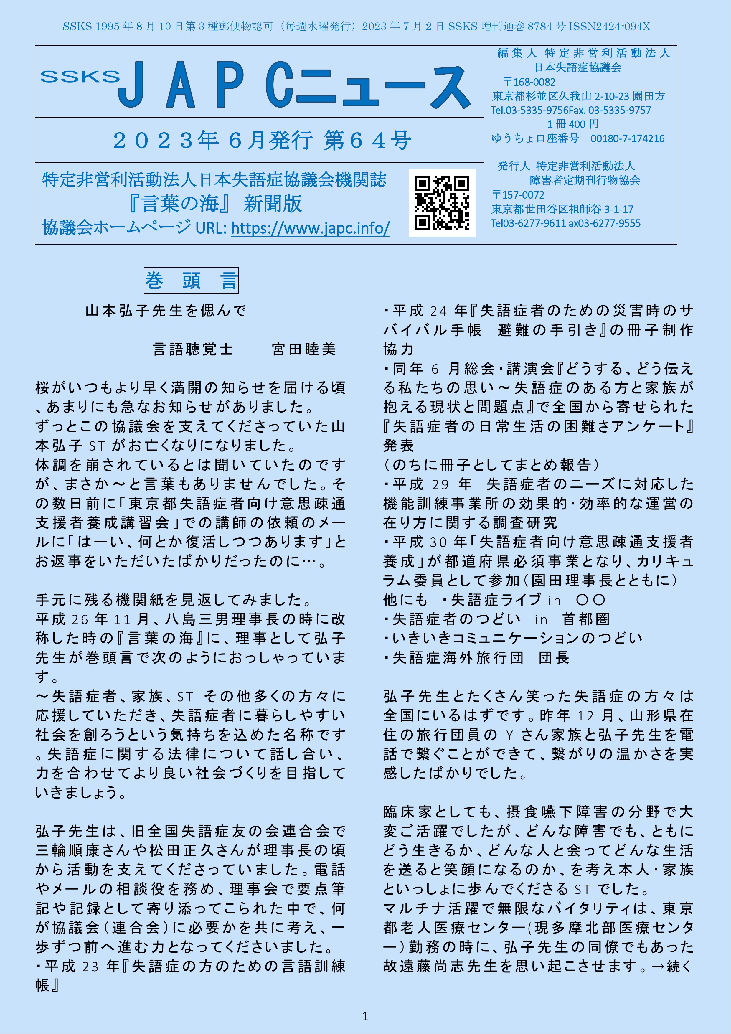 会員の方には、郵送しております。約6ヶ月後に公開されます。すぐに手元に欲しい方は、協議会へご連絡ください。1部400円です。 連絡先は、こちら 6ヶ月以前の号は、公開しています。 公開されている号は、こちらから御覧になれます 64号 65号 66号 67号 68号 68号 2024年3月発行 67号 2024年2月発行 66号 2024年1月発行 65号 2023年11月発行 64号 2023年6月発行